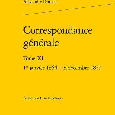 Le tome onze de la correspondance d’Alexandre Dumas est paru