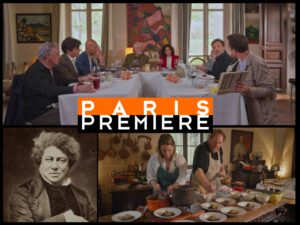 Ce dimanche 19 octobre sera diffusé à 10h10 sur la chaîne Paris Première le documentaire « Dumas, l’appétit de vivre » signé par Timothée Gutmann et Sallah-Edine Ben Jamaa. L’émission, qui associe le Grand Dictionnaire de Cuisine de Dumas et des plats de la cheffe Marie-Victorine Manoa avec François-Régis Gaudry, a été réalisée avec le concours de plusieurs membres de la Société des Amis d’Alexandre Dumas, dont Claude Schopp et Jocelyn Fiorina.
