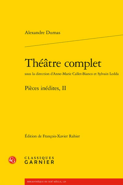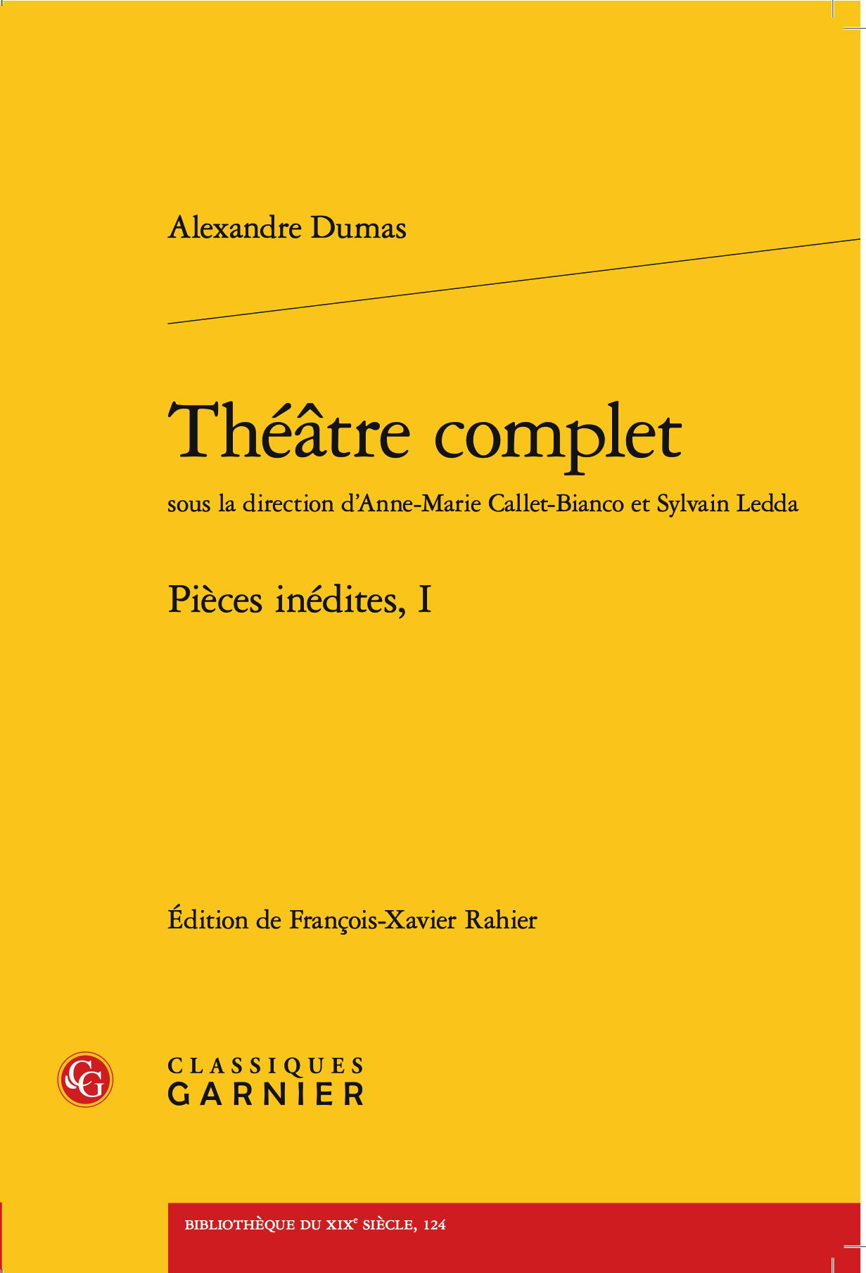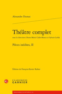On n’en a jamais fini avec l’apparition d’œuvres inconnues d’Alexandre Dumas. Mais cette nouvelle publication a une ampleur exceptionnelle: pas moins de quatorze pièces de théâtre inédites, dont huit complètes et six inachevées. Sans compter les fragments de quelques autres pièces. Présentée sous forme de deux volumes de plus de 950 pages chacun chez Classiques Garnier, cette édition est l’œuvre de notre ami François Rahier, qu’il avait tout juste achevée avant sa disparition brutale le 4 novembre dernier (voir ci-dessous post du 9 novembre). Fruit de recherches menées depuis vingt ans de la France à la Nouvelle-Zélande en passant par la République tchèque, cette édition inclut un important appareil critique: présentation générale, présentation de chaque pièce avec ses variantes, chronologie, et même un chapitre sur les « manuscrits perdus ou détruits, les pièces rêvées, les projets et les fantômes »…