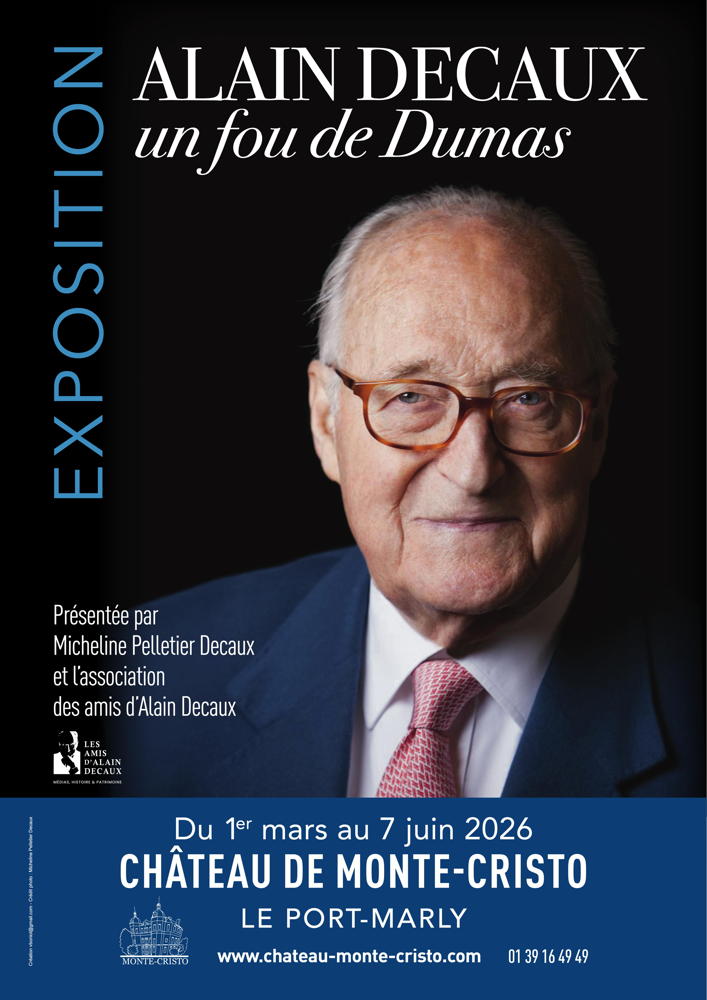 Alain Decaux, un fou de Dumas: tel est le thème de l’exposition qui vient d’ouvrir au château de Monte-Cristo, au Port-Marly, et qui se tient jusqu’au 7 juin. Organisée par l’Association des amis d’Alain Decaux, cette exposition évoque la vie et l’œuvre de ce célèbre historien et homme de télévision qui fut ministre de la Francophonie et membre de l’Académie française. Vouant une passion sans limite à Alexandre Dumas, comme le rappelle le titre de l’exposition, Alain Decaux a joué un rôle moteur dans le sauvetage du château de Monte-Cristo menacé par un projet de promotion immobilière en 1970. C’est à cette occasion qu’il a créé notre Société. Auteur d’un Dictionnaire amoureux d’Alexandre Dumas, Alain Decaux a également présidé l’entrée de l’écrivain au Panthéon en 2002 aux côtés du président de la République Jacques Chirac.